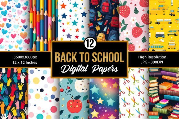 ???? اجعل بداية العام الدراسي أكثر حيوية وأناقة مع Back to School Digital Paper Patterns — الخيار الأمثل لكل مصمم يبحث عن لمسة مدرسية مبهجة تجمع بين الفن والتعليم!