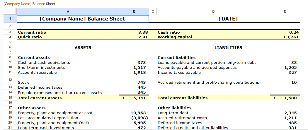 Balance sheet with ratios and working capital1.xls