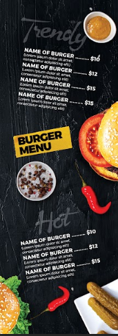 • تصميم عمودي أنيق مناسب لمطاعم البرجر والوجبات السريعة.