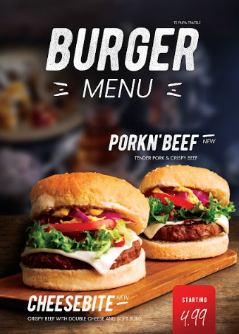 تصميم داكن أنيق يضيف لمسة فاخرة لعروض البرجر والمأكولات السريعة.