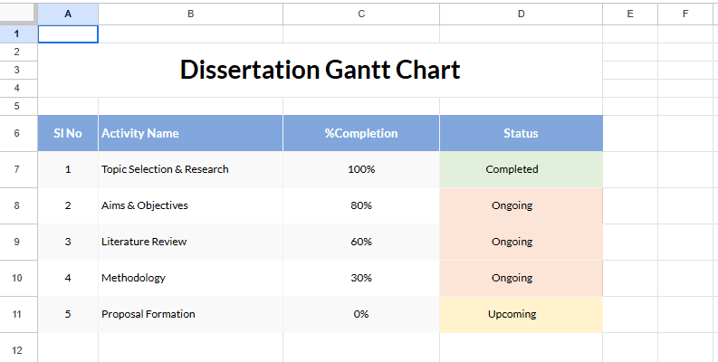 المنتج الرقمي Dissertation Gantt Chart.xlsx هو ملف إلكتروني متكامل تم تصميمه ليكون أداة عملية ومرنة تساعد على تنظيم وتخطيط المشاريع بشكل دقيق ومنهجي، حيث يجمع بين البساطة والفعالية في تقديم وسيلة واضحة لتوزيع المهام وربطها بالأطر الزمنية المحددة. هذا المنتج الرقمي يمثل وسيلة مثالية لكل من يسعى إلى وضع خطة عمل متدرجة تضمن له متابعة كل مرحلة من مراحل المشروع أو الدراسة أو أي نشاط يحتاج إلى تقسيم وتنظيم.