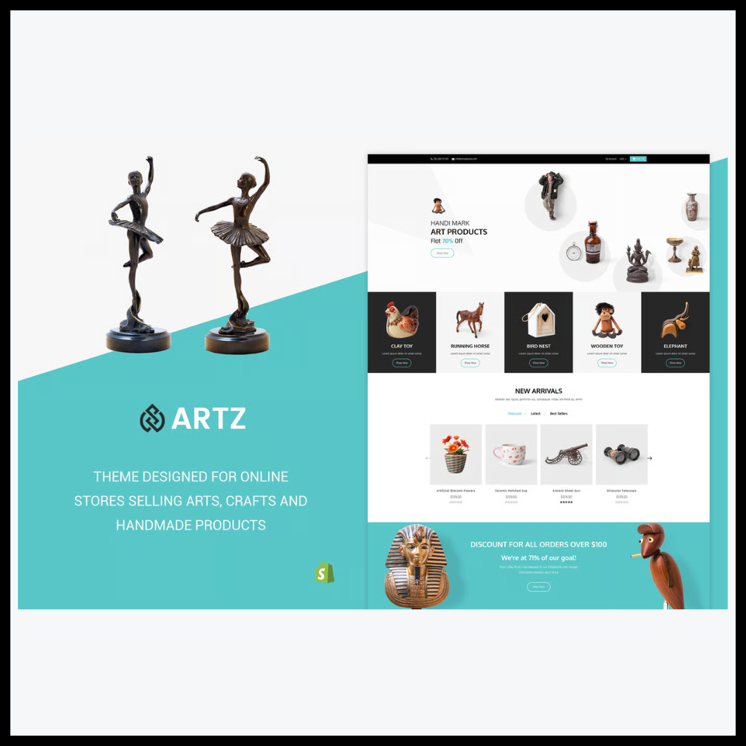 باختصار، إن Elements Artz Art Photography Shopify Theme هو منتج رقمي يجسد المعنى الحقيقي للأناقة البصرية في عالم المتاجر الإلكترونية، حيث يلتقي التصميم العصري مع البساطة الراقية ليخلق تجربة عرض مذهلة تبرز أعمالك بأجمل صورة. إنه الخيار المثالي للفنانين والمصورين الذين يسعون إلى تحويل أعمالهم إلى معرض رقمي نابض بالجمال والإبداع على منصة Shopify.