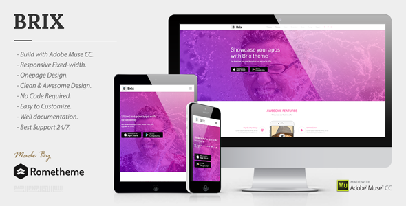 تم تطوير Brix Mobile App Landing Page Muse Template بأسلوب تصميم عصري يعتمد على واجهة أنيقة ومنظمة تُبرز أهم مزايا التطبيق ومواصفاته بطريقة تفاعلية وجذابة. يتميز القالب بتخطيط متوازن يسمح بعرض صور التطبيق، ومقاطع الفيديو التوضيحية، والمراجعات، وروابط التحميل من متاجر التطبيقات بشكل متناسق وواضح. كما تم تصميم كل عنصر داخل القالب بدقة ليوجّه تركيز الزائر نحو الهدف الأساسي من الصفحة، وهو تحفيزه على تنزيل التطبيق أو التعرف عليه بشكل أعمق.