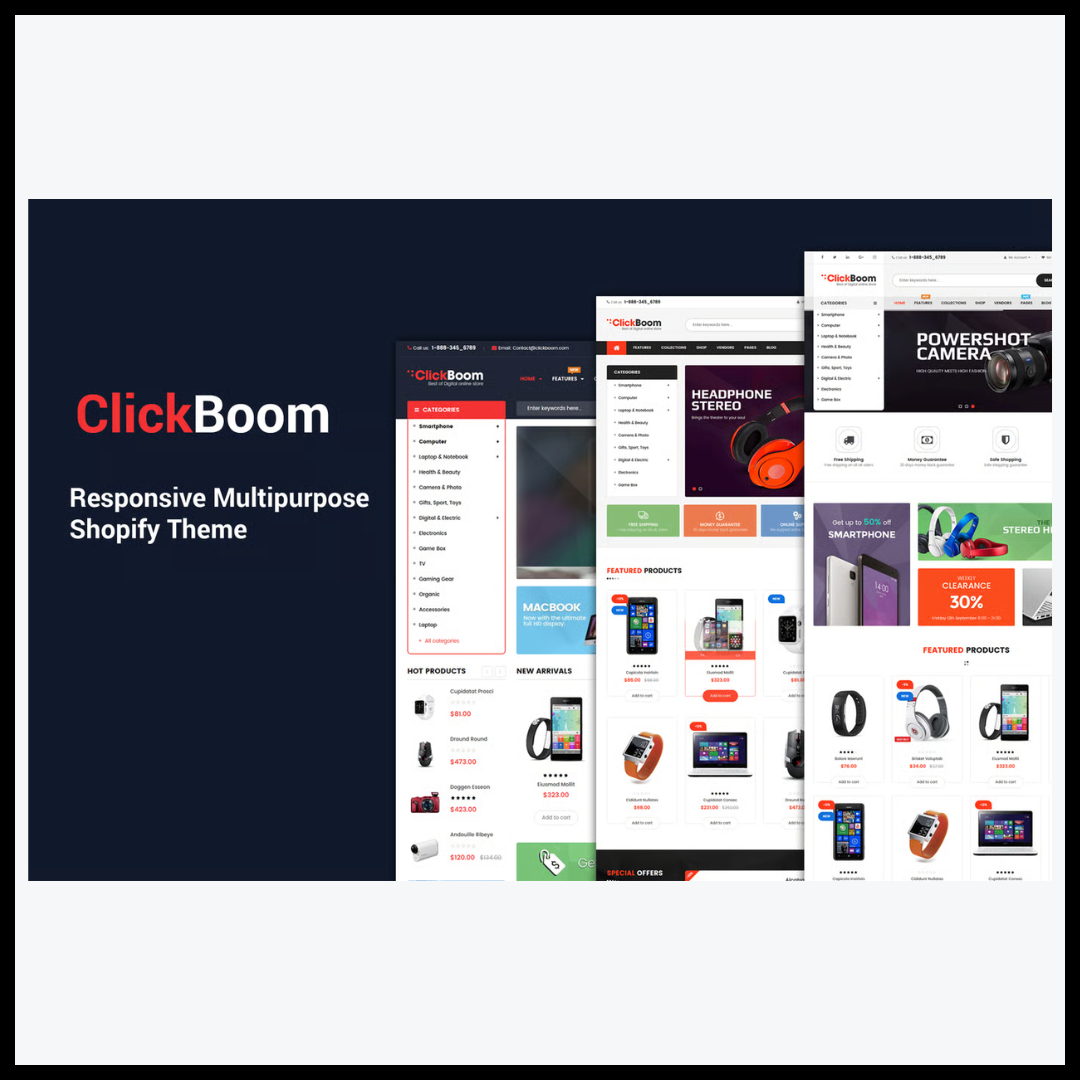 الجميل في ClickBoom أنه لا ينتمي إلى فئة واحدة من المتاجر، بل يتشكل حسب هوية من يستخدمه. سواء كنت تبيع منتجات تقنية، أدوات منزلية، أزياء، أو إكسسوارات، فإن التصميم يتأقلم ببراعة مع طبيعة المحتوى ليبدو كأنه صُمم له تحديدًا. هذه القدرة على التكيف ليست مجرد ميزة تقنية، بل هي روح القالب التي تمنحه اسمه: المرونة، والقدرة على “الانفجار الإبداعي” في كل مجال يلمسه.