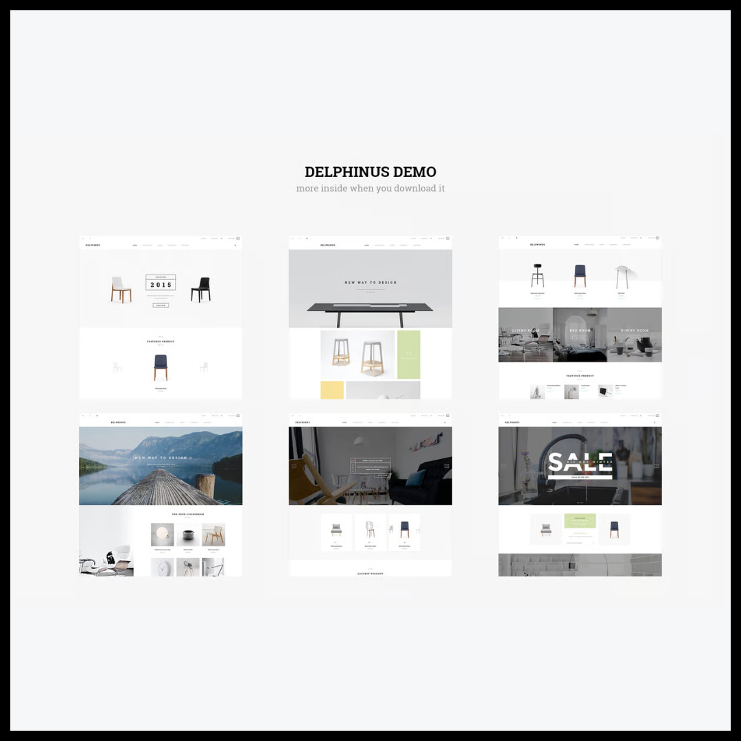 تم تصميم Delphinus ليكون قالبًا متعدد الأغراض (Multi-Purpose)، مما يجعله مناسبًا لمجموعة واسعة من المتاجر مثل الموضة والأزياء، الإلكترونيات، مستحضرات التجميل، الأثاث، الإكسسوارات، والأدوات المنزلية. يعتمد القالب على تصميم إبداعي وعصري يتميز بتوزيع بصري مريح، مساحات بيضاء متوازنة، وصور كبيرة عالية الجودة تُبرز المنتجات بأفضل شكل ممكن، ما يعزز تجربة المستخدم ويزيد من معدلات الشراء.