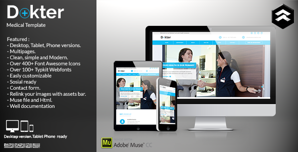 تم تطوير هذا القالب باستخدام منصة Adobe Muse، ما يمنح المستخدم حرية كاملة في تخصيص الألوان، والصور، والنصوص، مع دمج سلس لعناصر التواصل والنماذج (Contact Form) وعرض الخدمات الطبية بطريقة واضحة وجذّابة. القالب متجوّب بالكامل، مما يعني أن تجربة المستخدم تبقى ممتازة سواء عبر جهاز الحاسوب المكتبي أو الهاتف الذكي أو الجهاز اللوحي.