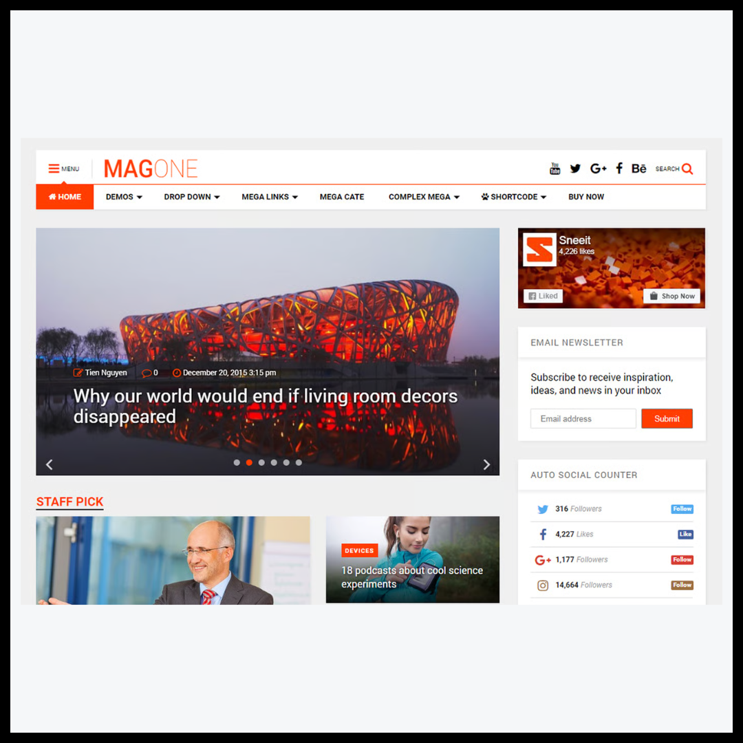 تم تطوير Magone بعناية فائقة ليوفر واجهة مستخدم منظمة وسهلة التصفح، مما يسهل على الزوار استكشاف الأخبار والمقالات بسرعة وكفاءة. إنه منتج رقمي متكامل يتيح لك تنظيم المحتوى ضمن أقسام وفئات متعددة، مع إمكانية إضافة صور عالية الجودة، مقاطع فيديو، ومعارض وسائط متعددة تجعل تجربة القراءة أكثر متعة وتفاعلية.