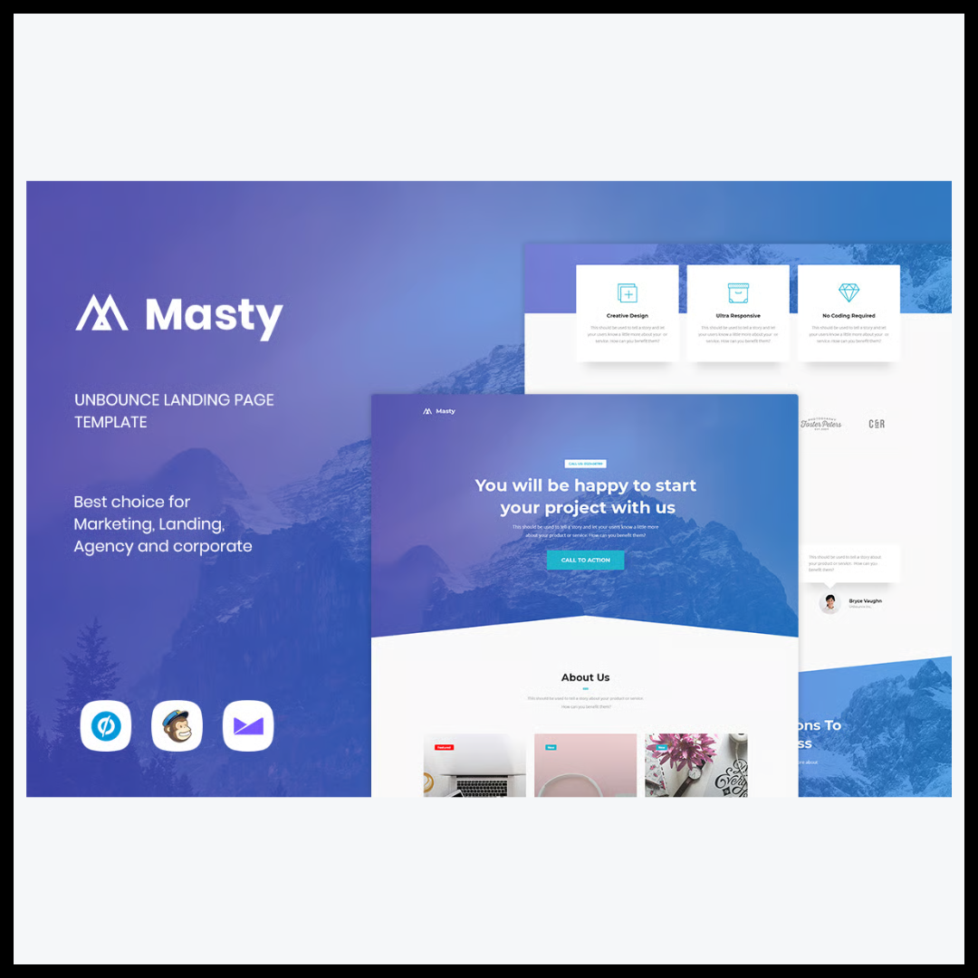 وبما أنه منتج رقمي شامل، فإن Masty يدعم جميع أدوات Unbounce التفاعلية مثل نماذج التسجيل، الأزرار المخصصة، والخرائط التفاعلية، مما يجعل صفحة الهبوط أكثر ديناميكية واحترافية. كما تم تصميمه وفق أحدث معايير SEO لضمان ظهور الصفحة في نتائج البحث وجذب أكبر عدد من العملاء المستهدفين.
