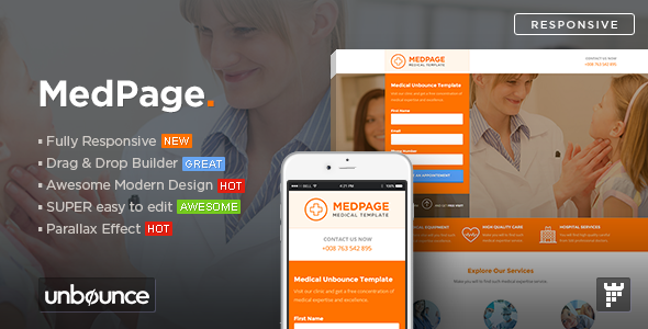 استثمر في Elements MedPage Medical Unbounce Template كمنتج رقمي يمنحك القدرة على تحويل فكرة خدماتك الطبية إلى صفحة هبوط جذابة وفعّالة، مع ضمان سهولة التخصيص والتطوير المستمر، ليكون موقعك دائمًا في أفضل صورة ويجذب جمهورك بطريقة احترافية وموثوقة.