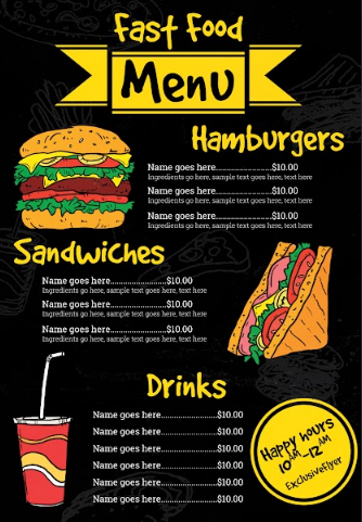 تصميم احترافي وأنيق يناسب جميع مطاعم الوجبات السريعة.