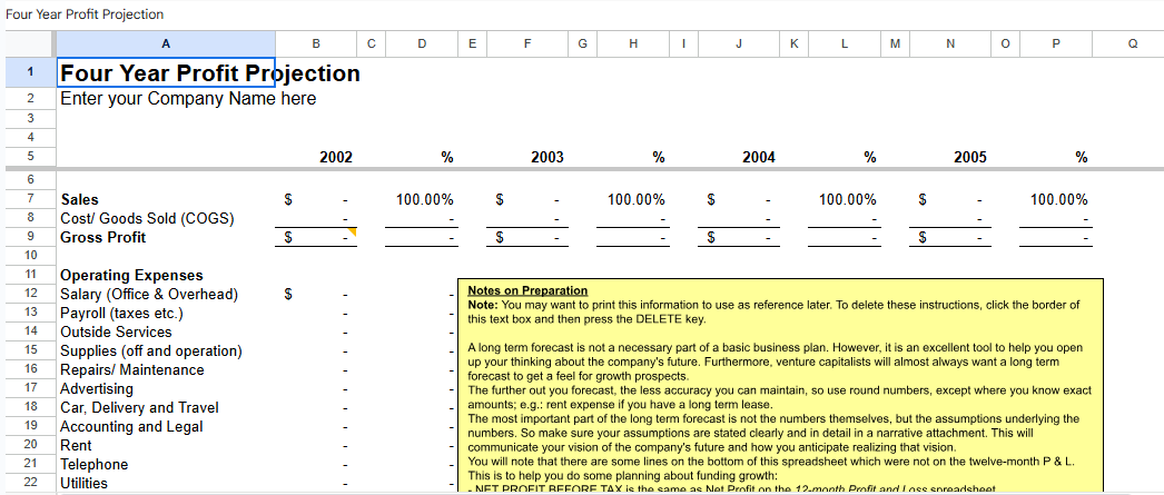 Four Year Profit Projection.xlt