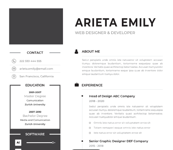 كما أن المنتج الرقمي Professional CV Resume Vol.18 يضيف للسيرة الذاتية لمسة من التميز تجعلها مختلفة عن أي قالب تقليدي آخر، فهو منتج رقمي يدمج بين التصميم العصري والأناقة البسيطة ليمنح السيرة الذاتية مظهرًا حديثًا يعكس شخصية مبدعة ومتجددة. هذه اللمسة البصرية المميزة تجعل الوثيقة أكثر من مجرد ورقة عمل، بل هوية متكاملة قادرة على ترك أثر طويل الأمد.