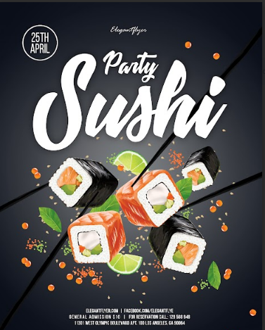 مناسب للترويج للمطاعم والفعاليات الخاصة بحفلات السوشي أو الأطعمة اليابانية.